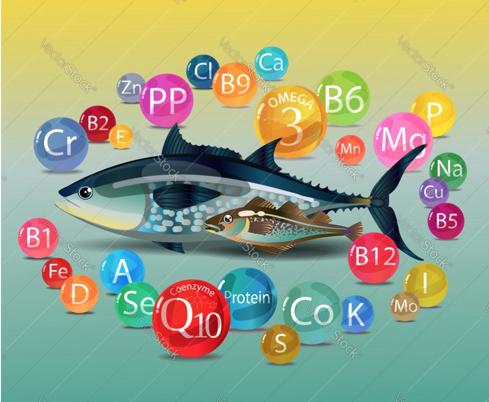 El pescado es rico en vitaminas A, E, D y las vitaminas del grupo B, como la B2 y la B12. La vitamina B, llamada riboflavina, es clave para el crecimiento y el desarrollo de los seres humanos ya que permite convertir los alimentos en energía para el cuerpo.